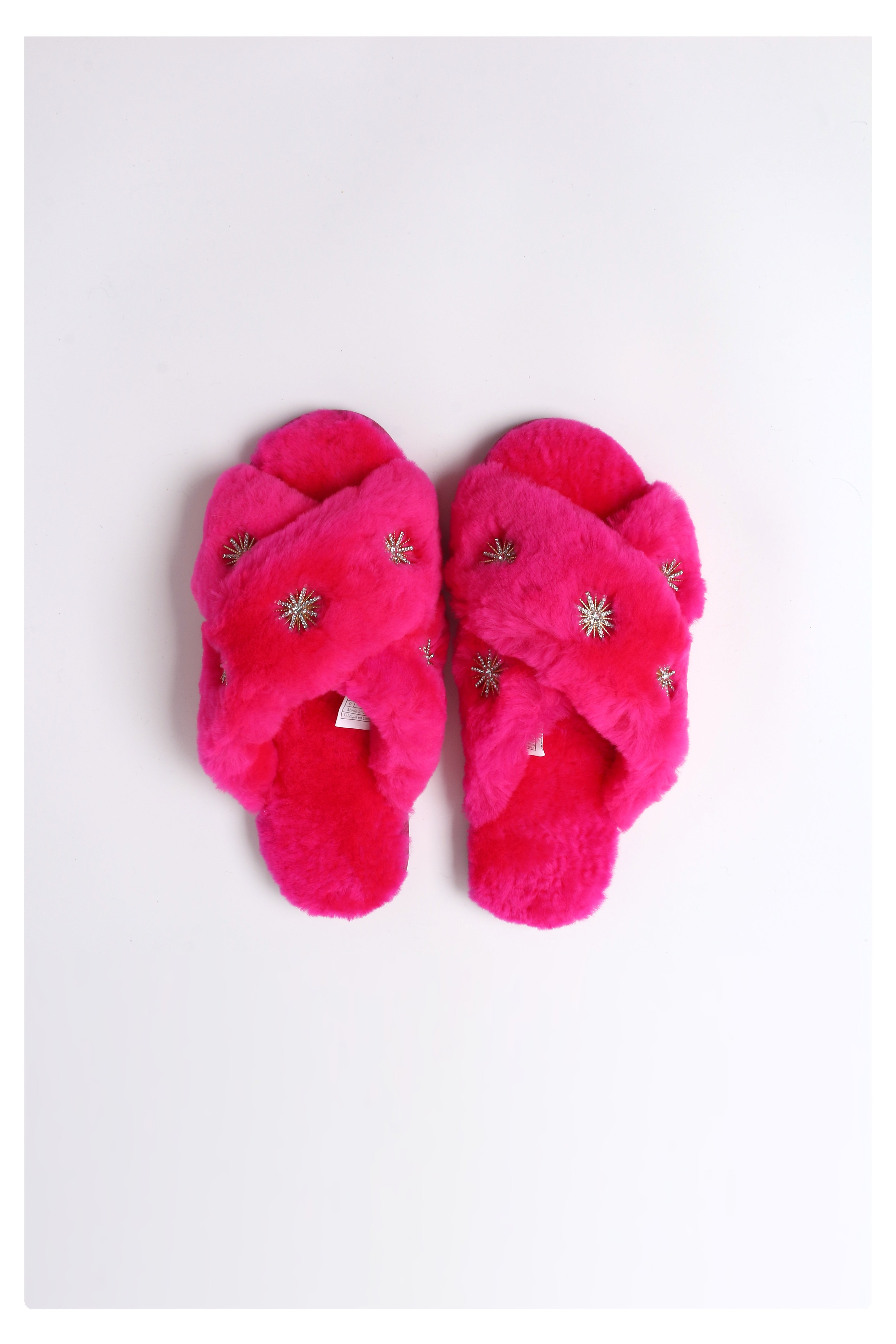 Step into holiday comfort and sparkle. Our Sheepskin Rhinestone Snowflake Slippers combine ultra-soft sheepskin with hand-placed crystal snowflake rhinestones for a festive, elegant shine. Designed for everyday wear, the plush shearling interior hugs your feet in warmth, while the durable non-slip rubber sole offers secure indoor-to-porch versatility.