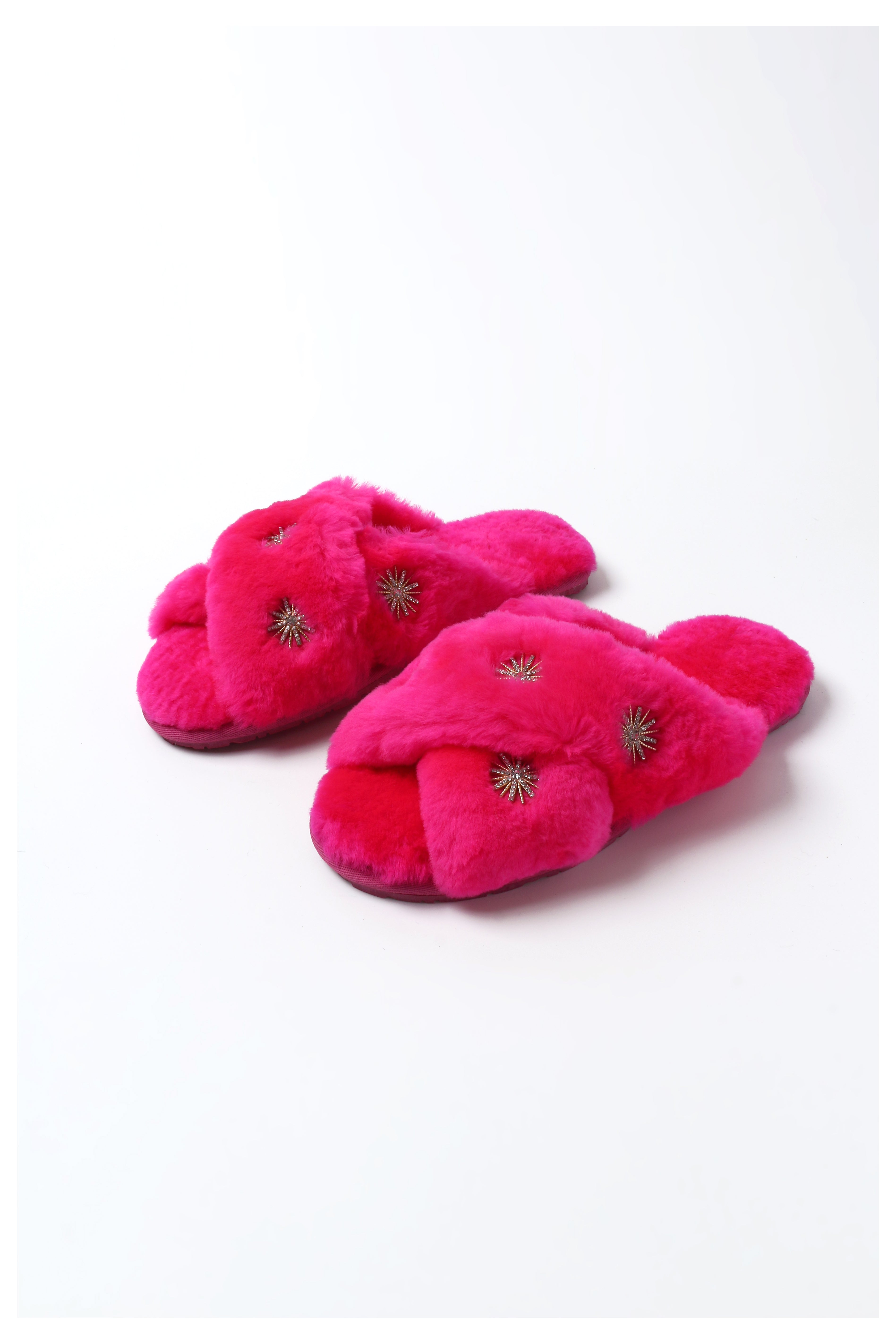 Sheepskin Slipper with Rhinestone